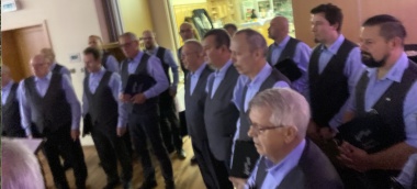 Der Männerchor begann mit einem donnernden Lied "Hurra, hurra, die Feuerwehr ist da" den Auftritt und es trat tatsächlich Ruhe ein im Zelt. Es folgten noch weitere schöne Lieder wie "Santiano". Der Auftritt wurde mit dem Lied "Wochenend und Sonnenschein" beendet. Auch im Zelt hat es den Zuhörern offenbar gefallen, wie man am Applaus erkennen konnte.